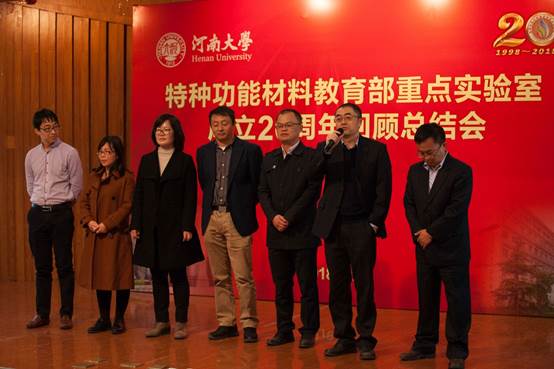 特种功能材料教育部重点实验室成立20周年回顾总结会在金明校区行政楼二楼报告厅举行。中科院北京纳米能源与系统研究所王中林院士,中国科学技术大学谢毅院士、张振宇教授,苏州大学迟立峰教授,中科院化学研究所王春儒、宋卫国研究员,国家纳米中心唐智勇研究员,北京理工大学杨国昱教授,复旦大学俞燕蕾教授,中科院过程研究所王丹研究员等光临,校党委书记卢克平、校长宋纯鹏及学校相关职能部门、兄弟单位负责人出席,实验室毕业生代表和实验室全体师生参加了本次会议。