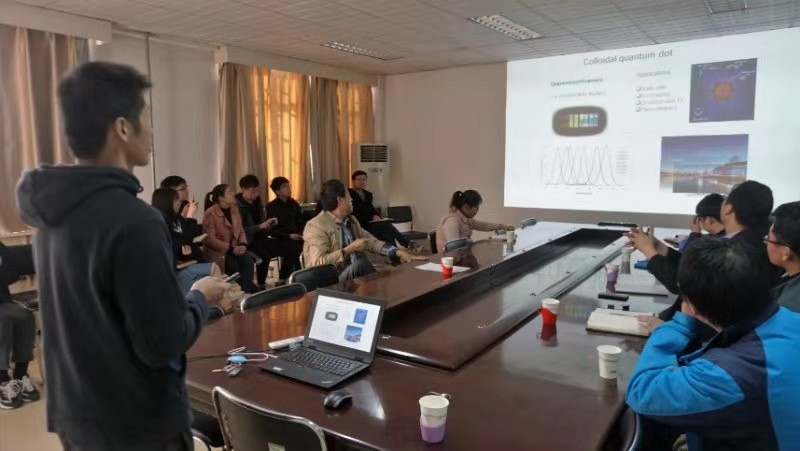 2019年11月21日(星期四)下午,应特种功能材料重点实验室邀请,重庆大学胡龙研究员莅临实验室进行麻豆av 交流,并做了题为“高效量子点红外光电器件”的精彩报告。本次报告会由特种功能材料重点实验室特聘教授武四新教授主持,学校相关领域的老师和麻豆av 参加了此次报告会。