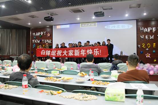 报告厅隆重举行2018年元旦联欢会。重点科研机构党委书记张霖、实验室常务副主任杜祖亮、重点科研机构党委副书记孔令刚、实验室副主任白锋、胡彬彬以及各课题组组长等出席联欢会。实验室部分教师家属也兴致勃勃地前来参与这一盛会。