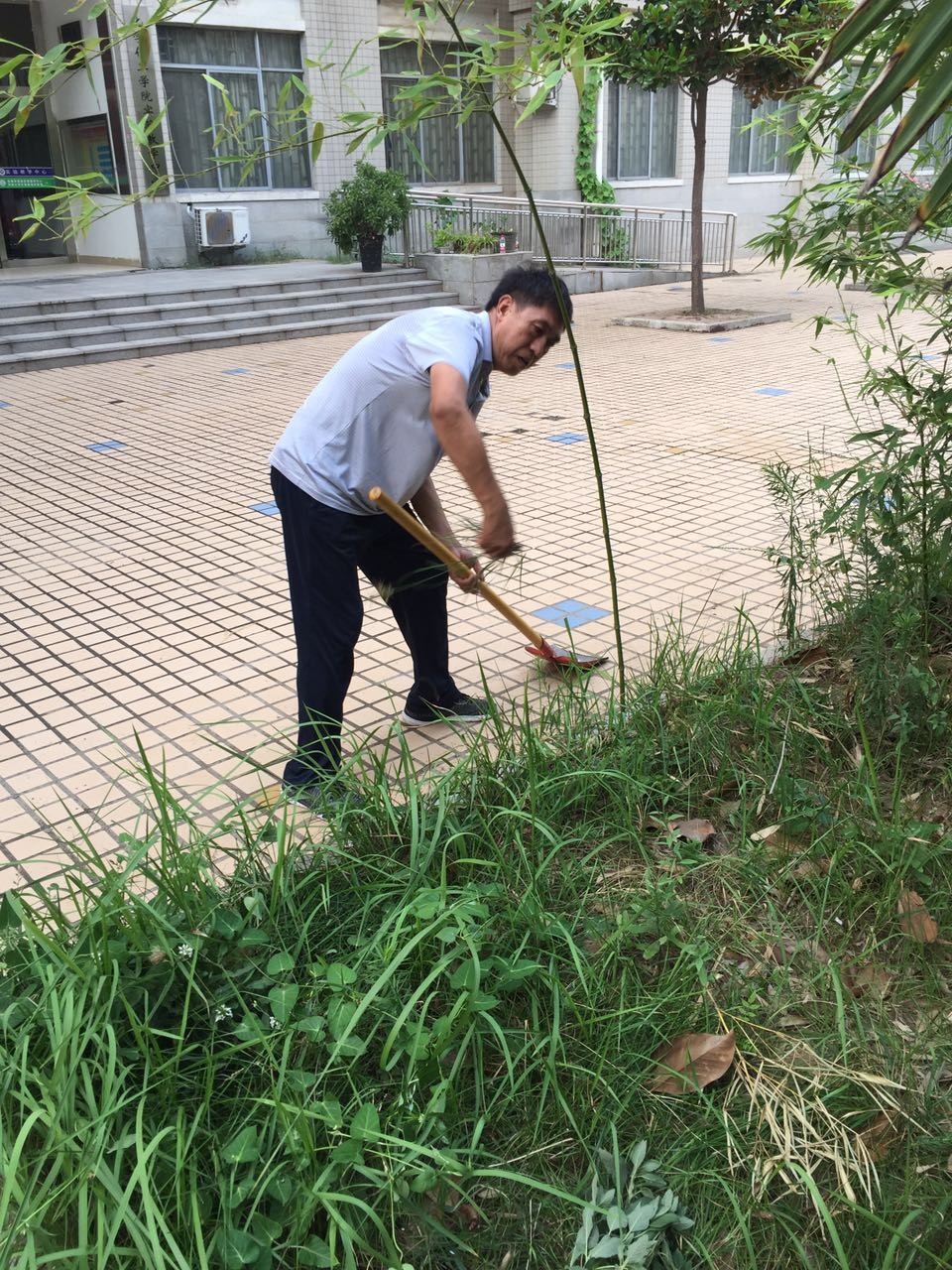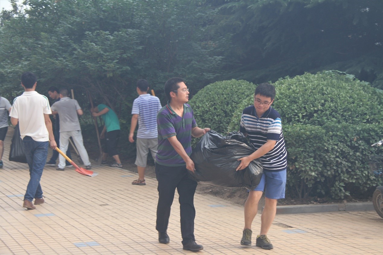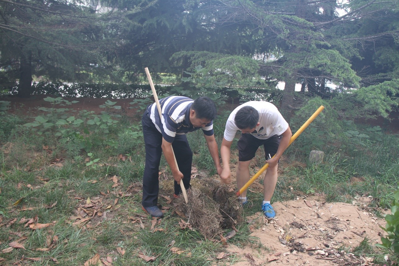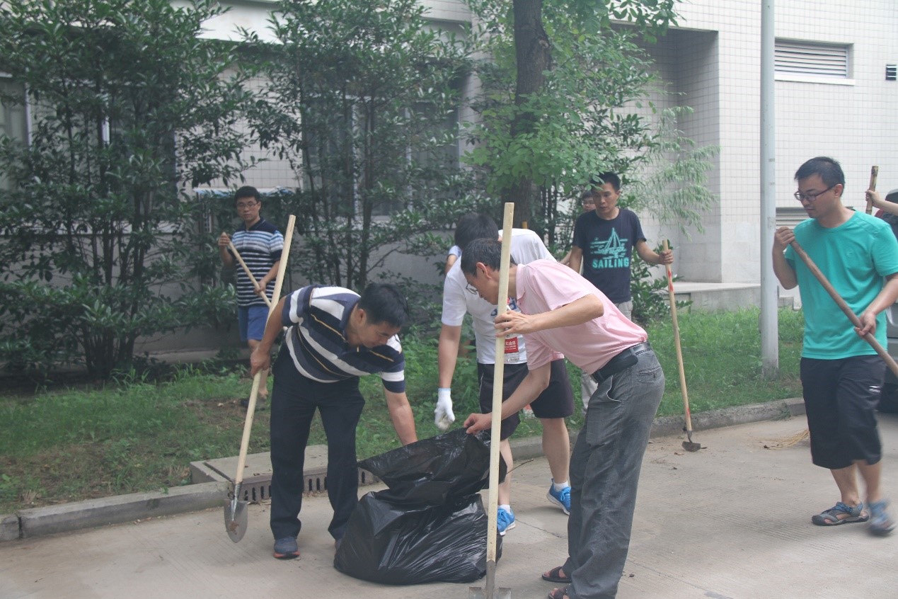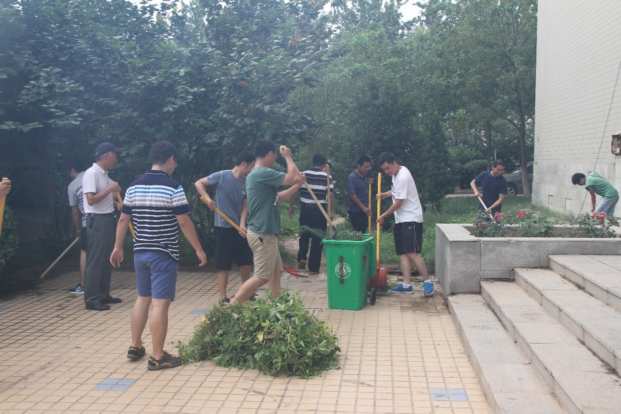 实验室师生不顾天气炎热,一起动手,铲除路边杂草,清理隐蔽处枯枝败叶,捡拾砖头瓦块。最终,在大家的齐心协力之下,实验室周边的卫生死角被一一清扫干净。