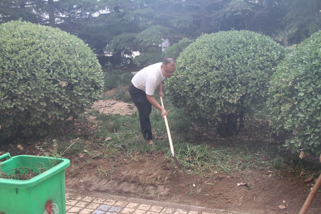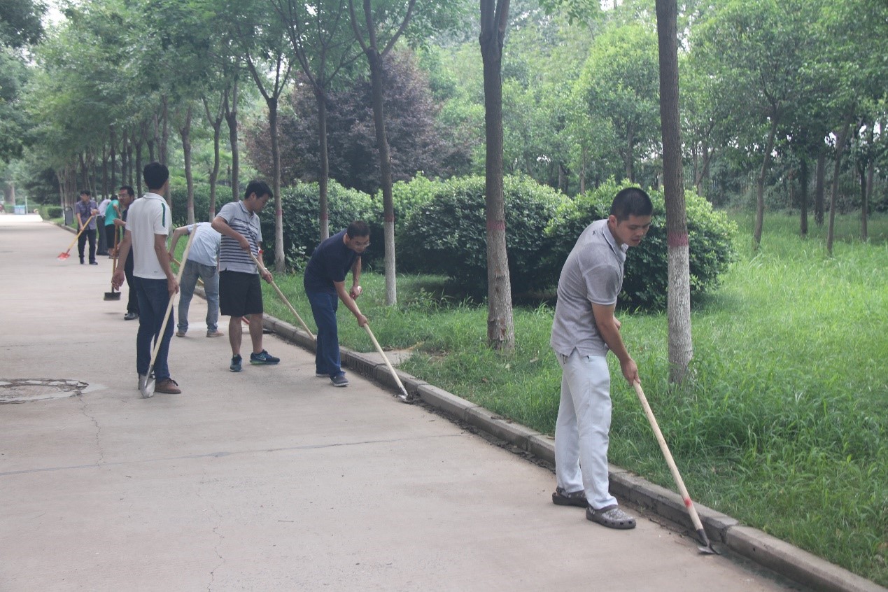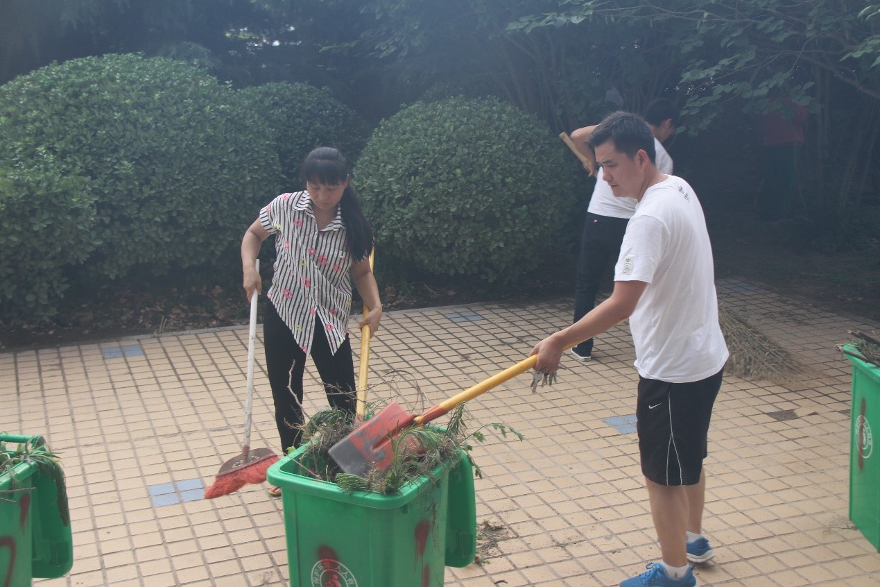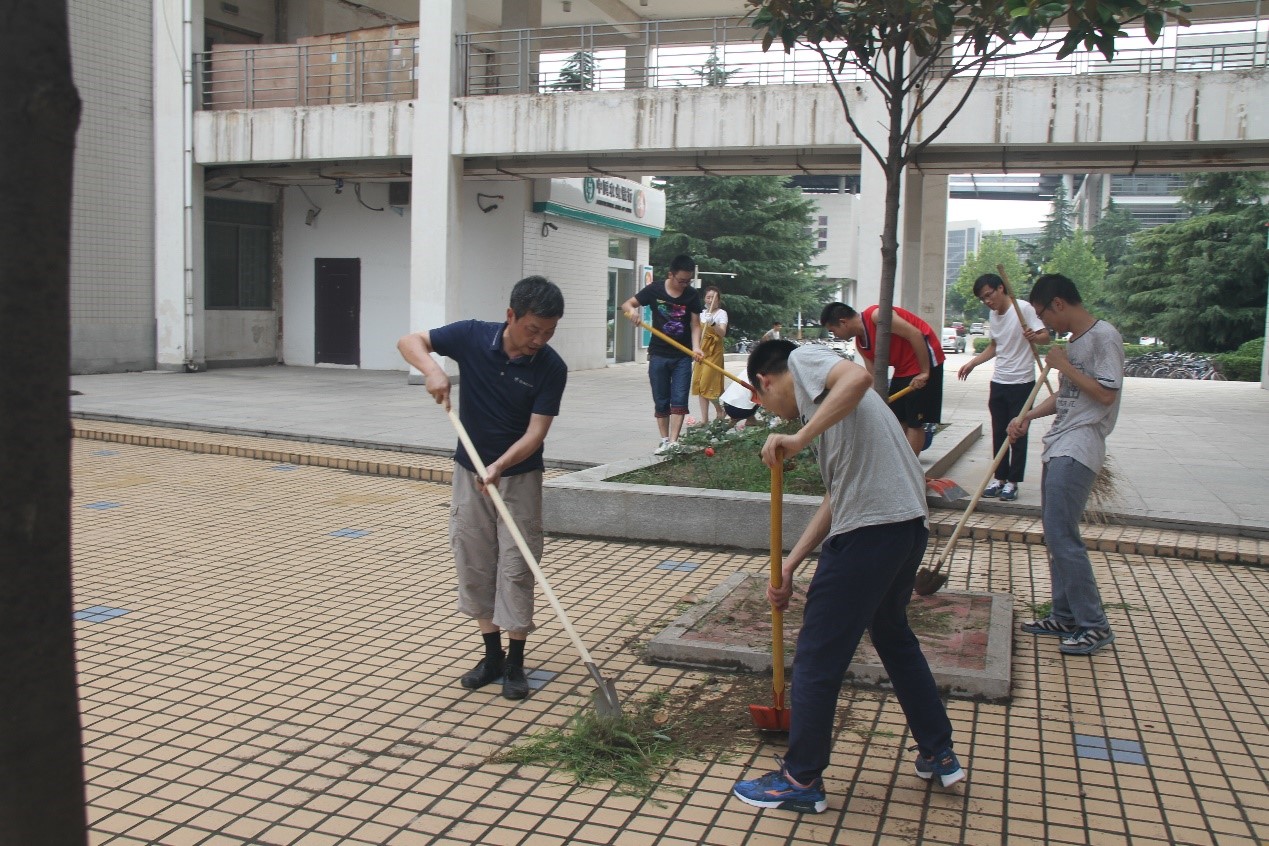 开封市国家卫生城市复审、全国文明城市创建工作,我校申报首届全国文明校园工作均已进入到关键阶段,环境卫生是其中的重要内容。因此,实验室师生轮流值日,每天坚持打扫卫生,做好保洁维护。在此基础上,7月17日下午,在重点科研机构党委书记张霖、实验室常务副主任杜祖亮带领下,实验室全体师生针对卫生死角,开展专项校园清洁活动。