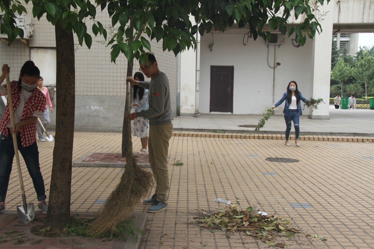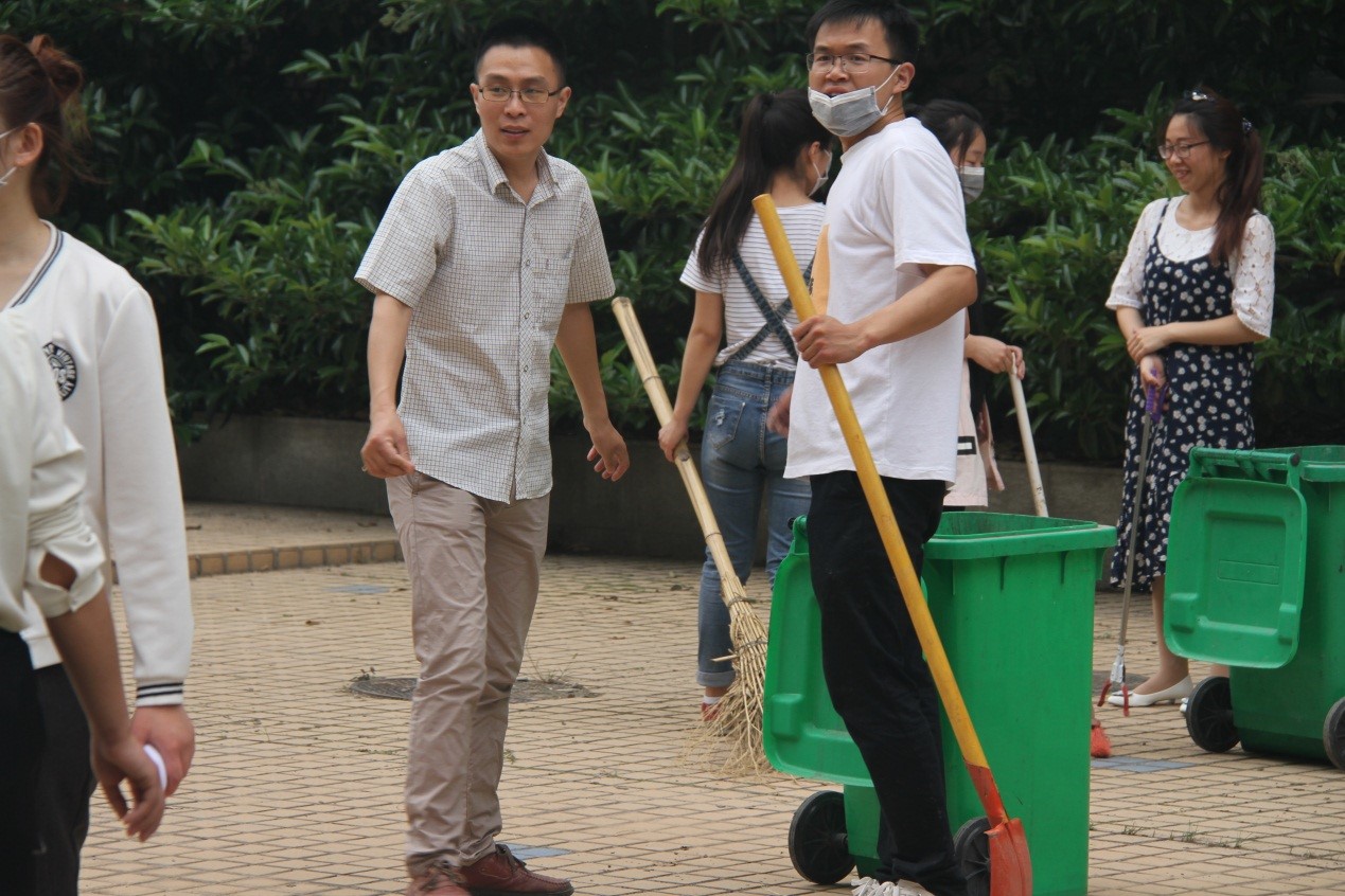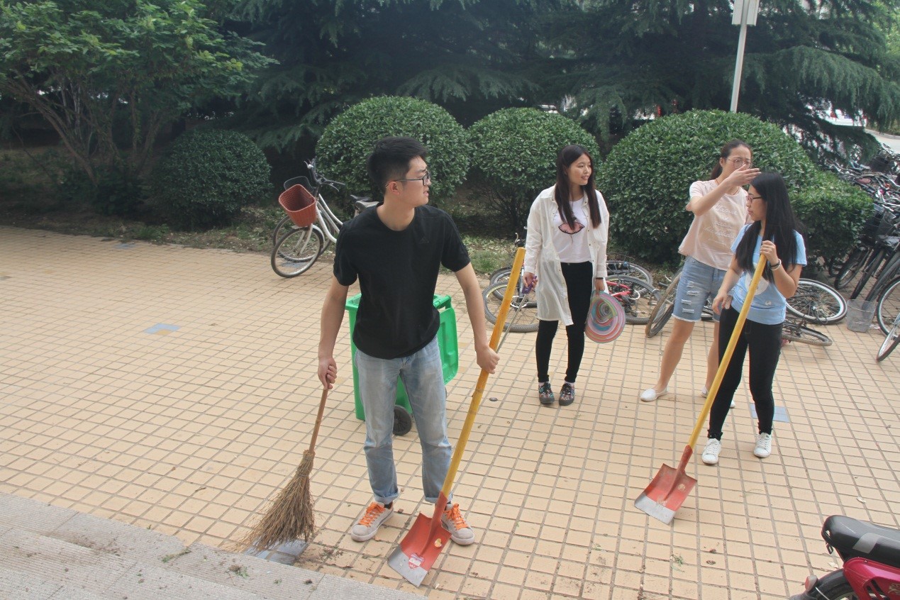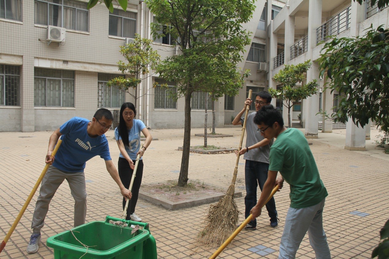 随着“劳动月”的到来,为了培养学生的劳动意识,同时也为了践行团中央“一学一做”学习教育,2017年5月11日上午,特种功能材料重点实验室麻豆av 从身边小事做起,在麻豆av 辅导员杨坤鹏的带领下,开展实验室清洁区卫生大清理活动。大家携带各种工具,分工明确,齐心协力,快速、高质地完成了任务。重点清扫了实验室周边的白色垃圾和实验室楼后树丛花坛的落叶,还实验室一片红娇绿浓。
