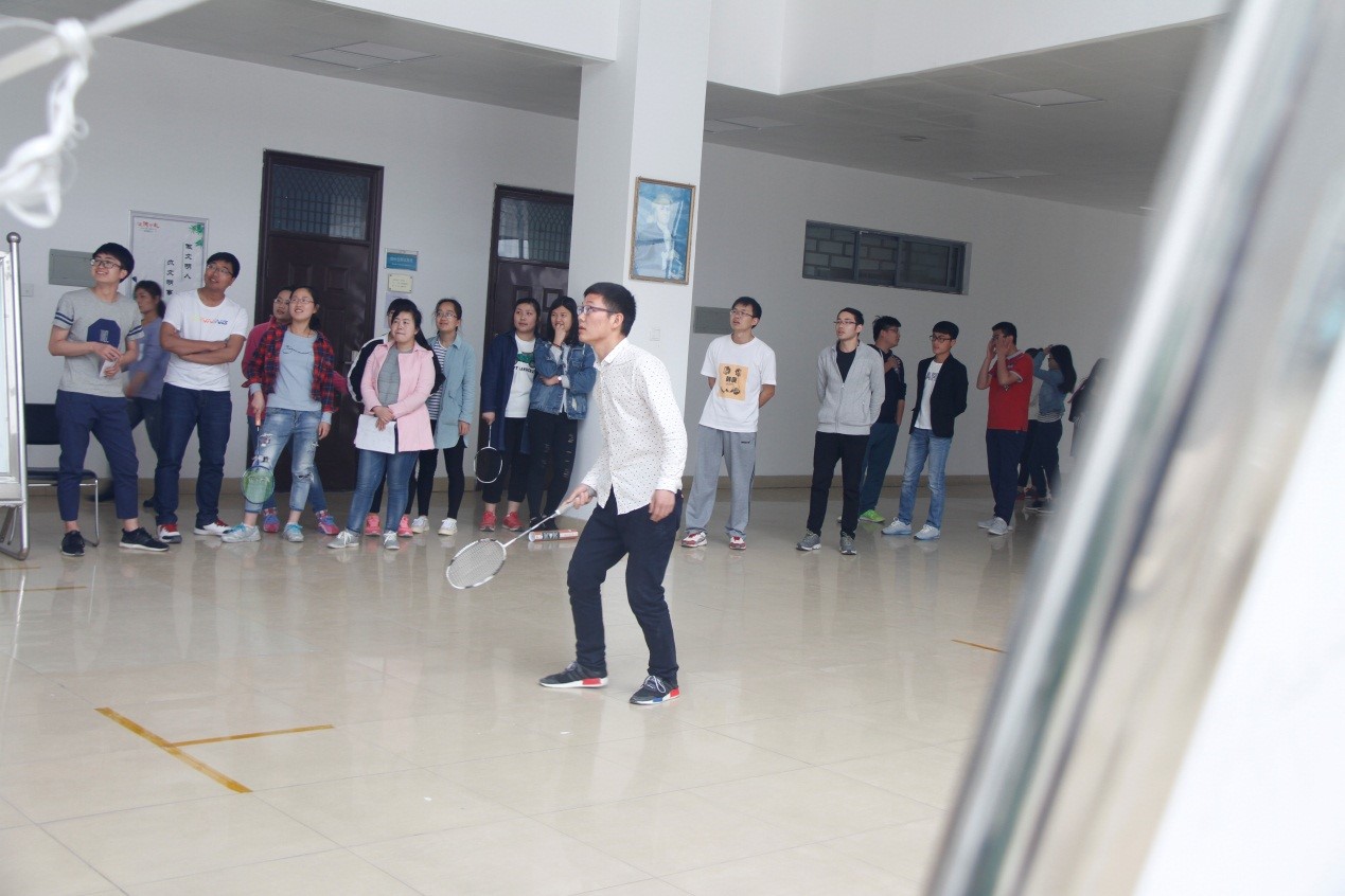 此次比赛分为男单、女单、男双和混双四个项目,研一、研二学生踊跃报名、积极参赛,正在准备毕业答辩的研三学生也在忙碌之中抽出时间和师弟师妹们一决高下。此次赛事分为两部分,4月20日进行初赛,采取三局两胜淘汰制,顺利晋级的学生于今天下午进行决赛。本着“友谊第一,比赛第二”的体育原则,羽毛球比赛如火如荼的进行着。遇到旗鼓相当的对手时,一手漂亮的吊球、点球和扣杀牵动着观众的每一根神经,让人身临其境之时大呼过瘾。既然是比赛就一定会有输赢,经过一下午的激烈搏斗,通过三局两胜淘汰制,决出胜负。实验室为获胜选手准备好礼,也为所有参赛选手送上礼品。