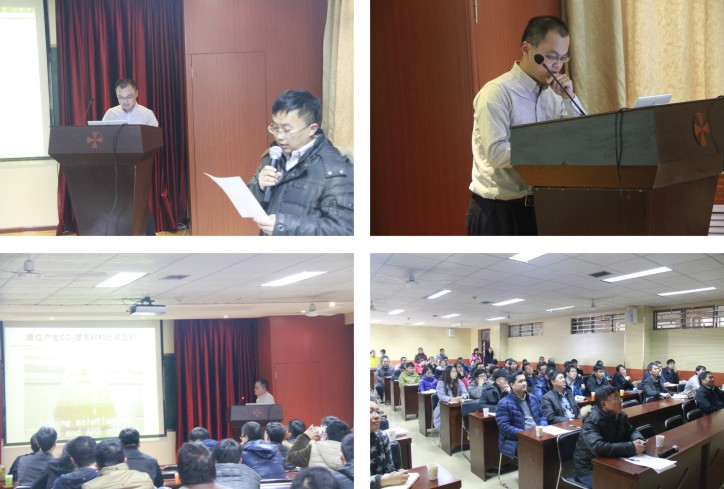 赵勇博士后主要从非金属析氧催化剂、过渡金属氧化还原催化剂、氮化钨产氢催化剂、碳基电催化剂这四个方面,从表面催化活性位的改善和提高等方面进行了深入浅出的分析,并就其在能源转换器件等领域的应用进行了详细的介绍和讲解。赵勇研究员在报告中提出了诸多关于碳基电催化剂的新观点和新见解,让全体参加报告会的师生受益匪浅。报告会结束后,实验室常务副主任杜祖亮教授对赵勇研究员的报告进行了精彩的点评,并和赵勇研究员对几个有可能进行交叉合作的研究方向进行了深入探讨。