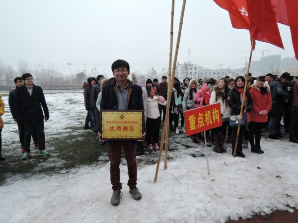 2015年秋季运动会优秀赛区”荣誉称号,这是重点科研机构团委所有老师、同学们共同的荣誉!正是他们的积极参与、奋力拼搏才换来这块沉甸甸的奖牌!颁奖现场同学们热情的欢呼声,正是对这一荣誉的赞美!