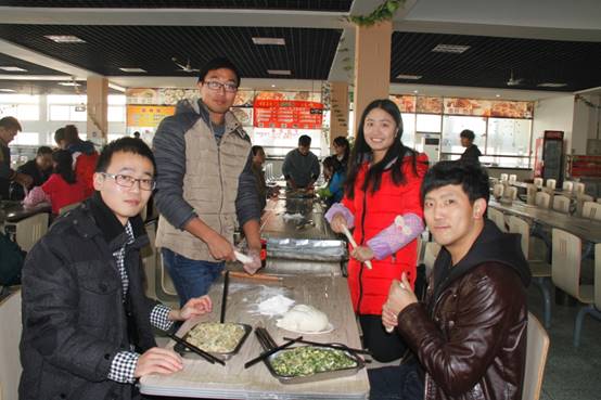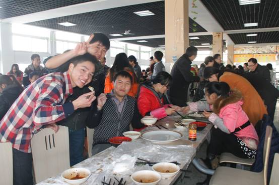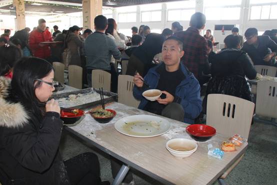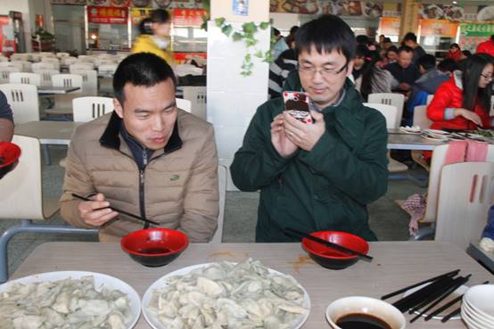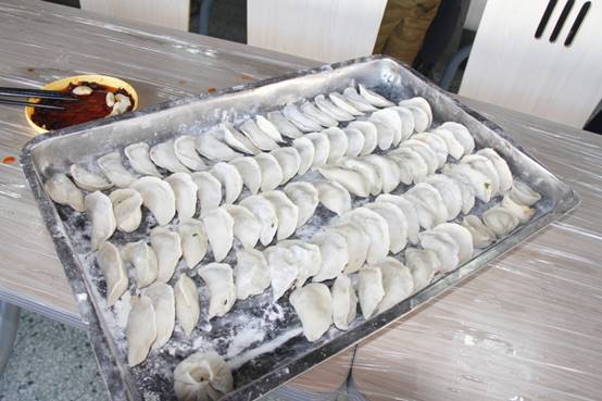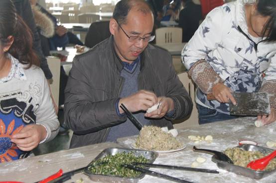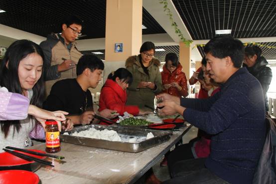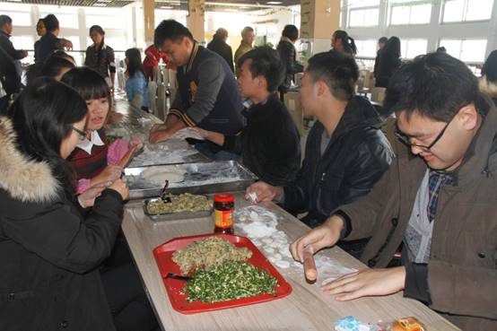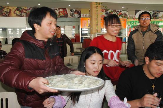 为增加师生感情,给繁重的科研工作增加一抹色彩,在冬至当天,特种功能材料重点实验室组织实验室师生欢聚一堂,在北苑餐厅二楼以集体包饺子的方式迎接这一传统节日。为了不影响餐厅正常的午餐供应,上午9:30,实验室浩浩荡荡的包饺子“大军”便赶往了餐厅,大家自由组合,一个个“饺子基地”拔地而起。揉面、擀皮、包饺子……大家八仙过海,各显神通,不一会一排排诱人的饺子便新鲜出炉!莘莘学子来自五湖四海,盘盘饺子便形态万千,让我们深刻体会到中华文明的博大精深。