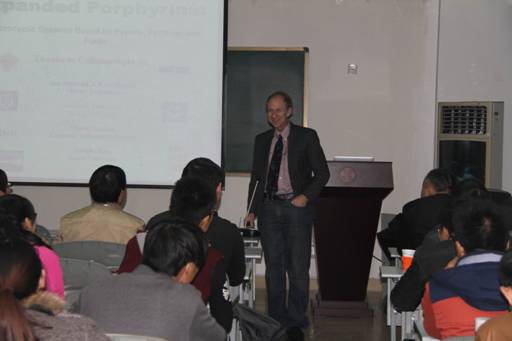 11月15日上午,应特种功能材料重点实验室邀请,国际著名的超分子化学学家,美国德克萨斯大学奥斯汀分校Sessler教授访问重点实验室,并在实验室二楼报告厅做了题为:“Expanded Porphyrins: Macrocylic Systems based on Pyrroles, Pyridine, and Furan”的麻豆av