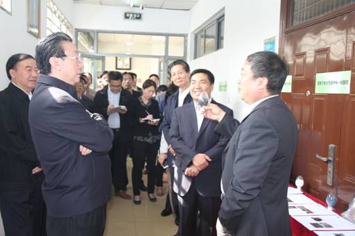 走到实验室纳米材料成果展示区,张治军教授向郭庚茂书记详细汇报了目前实验室已经开展的成果转化方面的工作。当介绍到纳米自修复润滑材料时,郭书记还兴致勃勃地向陪同视察的其他领导同志介绍纳米自修复润滑材料的性能和应用。当得知该成果已经转让给相关企业后,郭书记非常高兴。张治军教授还详细介绍了纳米二氧化硅系列产品的研发情况及其在低品油田开采、高压绝缘材料、高性能橡胶等领域的技术应用。当谈到实验室正在开发的锂离子电池的负极材料时,郭书记也表现出浓厚的兴趣,与张治军教授进行了细致的交流。张治军教授还汇报了目前开展的隔热材料和铜纳米线材料的研发工作。郭书记高兴地说:“很好,你们的成果不少呀!”
