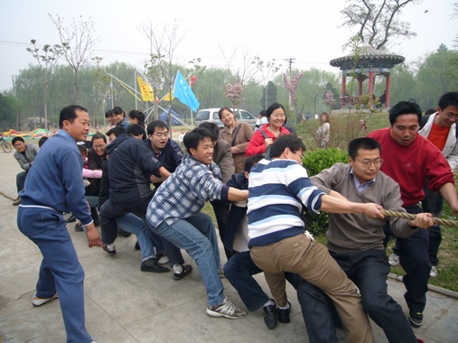 随后,由全体师生组成的四支队伍进行了紧张激烈的拔河比赛。参赛队员们个个精神抖擞,团结一心,啦啦队在两旁呐喊助威,激情高涨,热烈的场面把本次活动推向了高潮,硕士一年级代表队凭借不俗的实力和出色的表现赢得了冠军。自由活动时间,师生们有的打羽毛球,有的放风筝有的下象棋,都乐在其中。以杜祖亮教授和王华教授为核心的两支足球队展开了激烈有序的争夺,杜老师脚法娴熟,王老师也不甘示弱,队员们你追我抢,精彩不断。下午四点,大家带着愉快的心情,依依不舍的结束了本次游园活动。