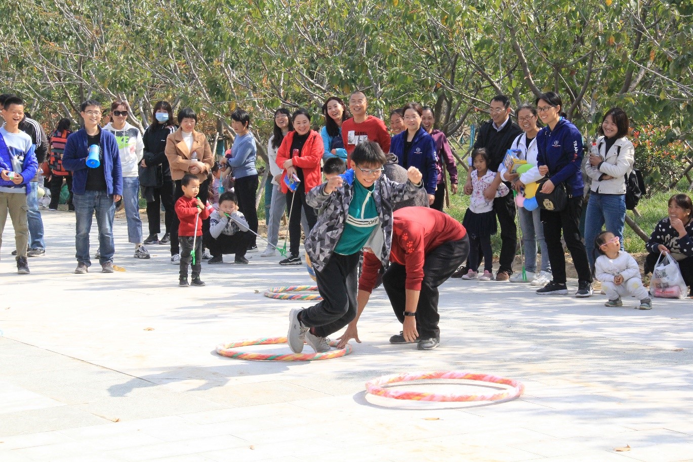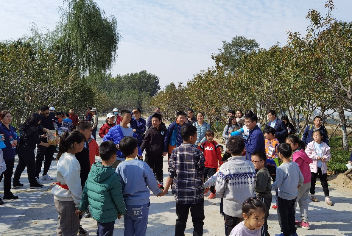 来到黑岗口广场,大家在黄河看台处集中合影留念。随后一部分老师穿上志愿者服装、拿着夹子和垃圾袋,进行了“人人捡垃圾、保护母亲河”的文明志愿服务活动。接着工会组织大家开展了套圈、多人抱团、多足跑和跳圈圈的游戏。游戏活动刚开始,小朋友们就争先恐后围到套圈处,很快套圈物品还有奖品都被小朋友领的所剩不多。多人抱团的游戏小朋友们也是踊跃积极参与,经过多轮淘汰最终才剩下三个胜利者。接下来是最精彩的多足跑(两人三足),主要考验配合意识和协作能力,要求以家庭组队参加,一共有20多个家庭参与了这个比赛,每一队你追我赶,甚是激烈,把游戏的气氛推向了高潮。随后的跳圈圈,不仅需要家长和孩子的密切配合,还需要小朋友自己跳得远,看着小朋友们玩得不亦乐乎,连老师也都要上场施展一番,找回童年的快乐和激情。欢乐的时光总是匆匆而过,不知不觉中一个半小时就过去了,活动结束了大家仍感到意犹未尽。