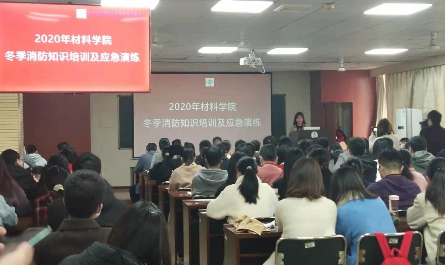 活动开始,由张四海科长向师生们做消防知识培训。他结合近年来发生的火灾案例,以视频、图片及文字的形式生动地阐述了普及消防安全知识提升消防意识的重要性。同时从“防火”、“灭火”、“逃生”、“自救”四个方面详细介绍了火灾的形成过程、自救逃生的方法以及灭火器的种类和操作方法等一系列消防知识。本次消防知识培训深入浅出,引用案例发人深省,与会师生进一步增强了消防意识,掌握了基本消防知识。